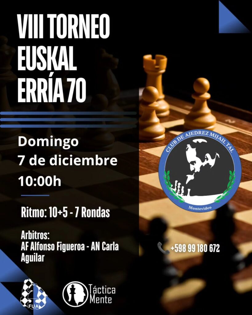 Llega el VIII Torneo Euskal Erría 70, una cita imperdible para cerrar la temporada ajedrecística con todo
