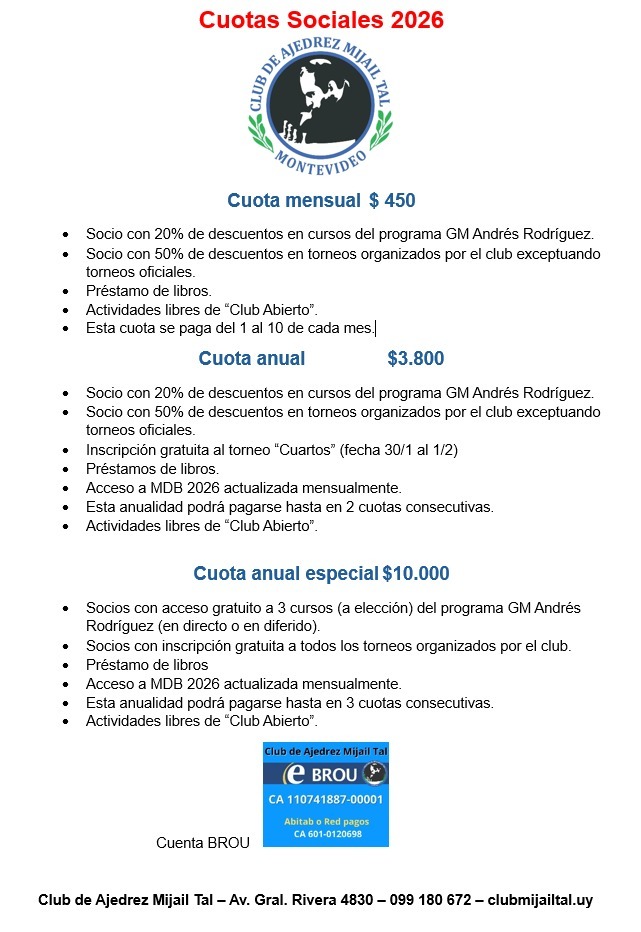 - Cursos on line todo el año: GM Andrés Rodríguez